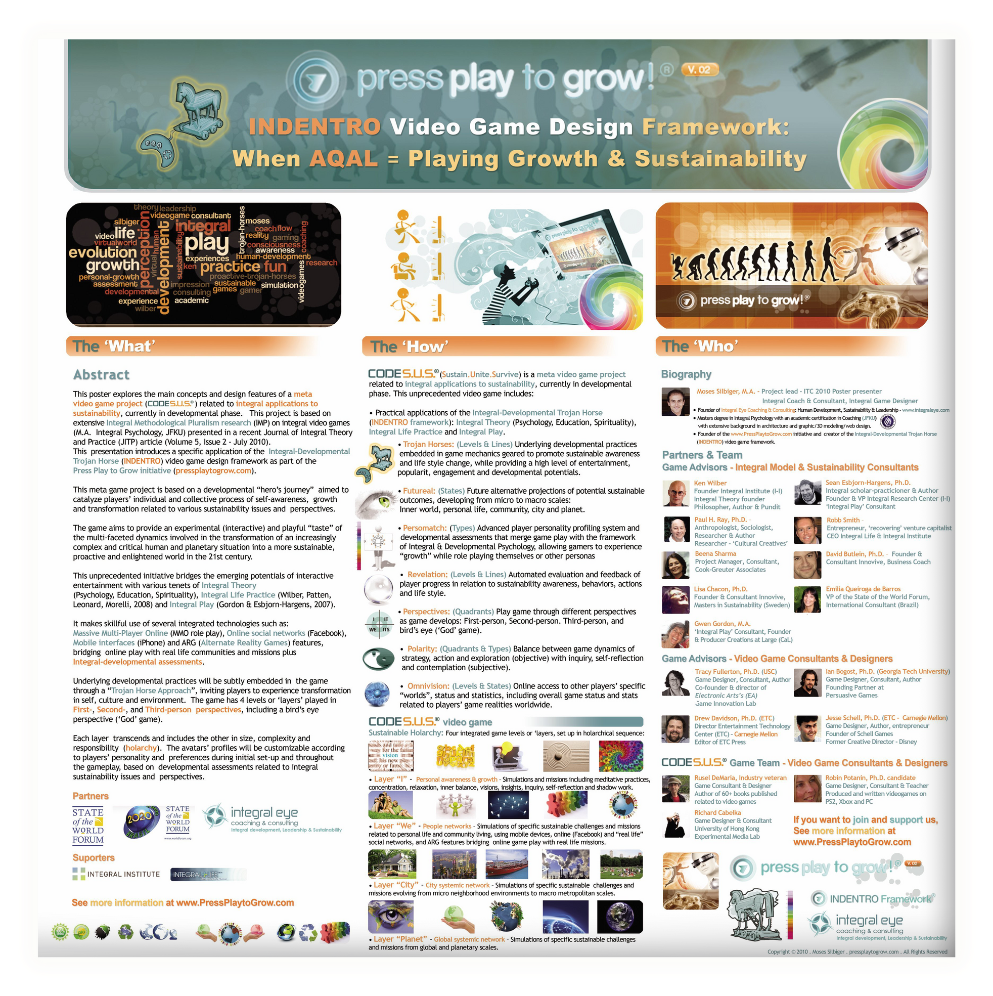 and consultants within the Integral community, including Ken Wilber and associated developmental scholars.Conceptual development of the framework included collaboration with Russel DeMaria, a veteran game designer and author
